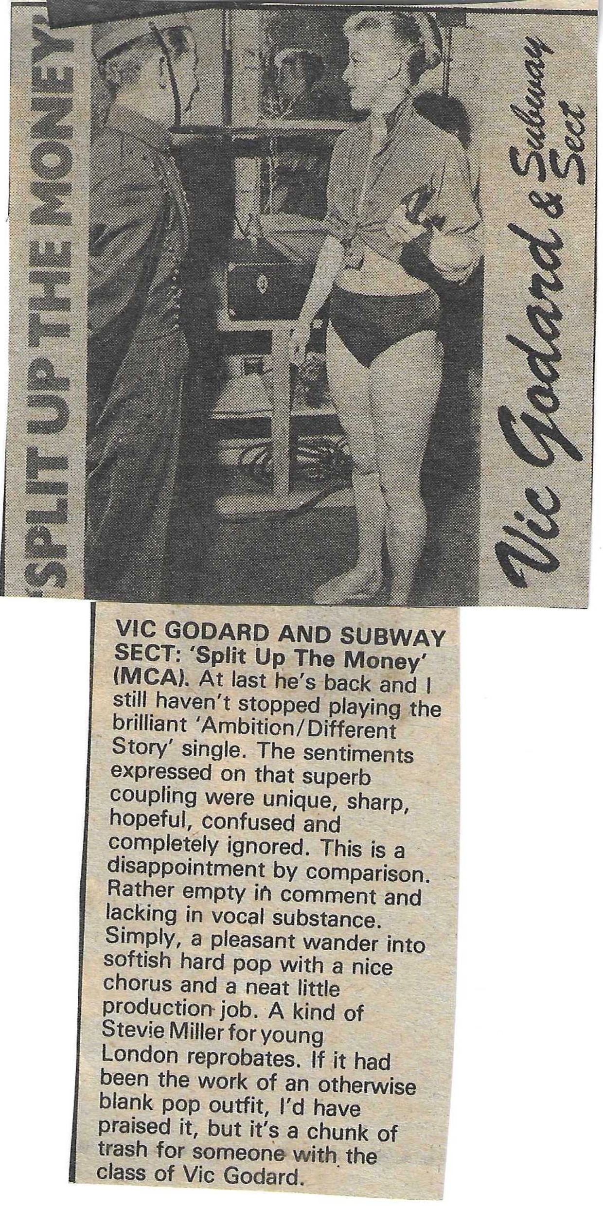 The album contained two classic Vic Godard and Subway Sect singles. Split Up The Money was produced by Dennis Bovell and again released on Oddball Records.